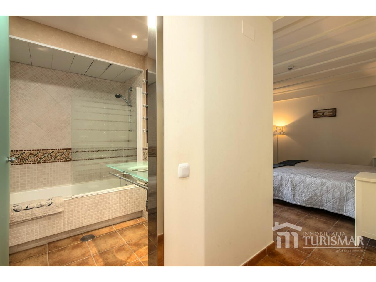 La cocina, completamente equipada, se integra perfectamente en el espacio. Además, la vivienda se vende amueblada, con armarios empotrados, aire acondicionado y plaza de garaje incluida en el precio. Todo en perfecto estado de conservación, listo para entrar a vivir.