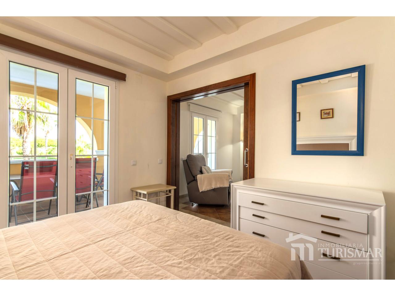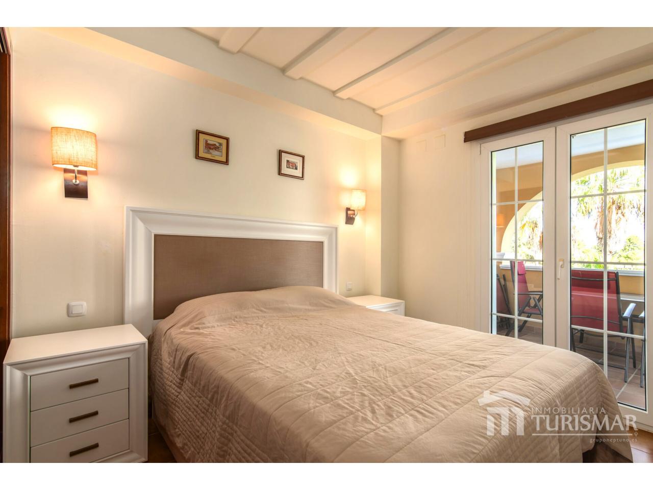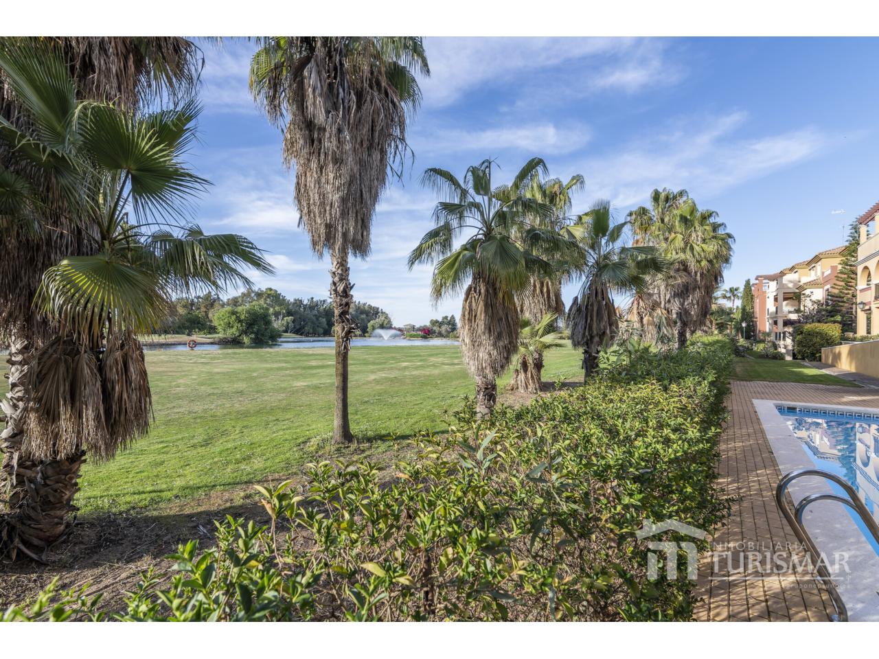 La vivienda cuenta con 75 m² muy bien distribuidos: dispone de 2 dormitorios, 2 baños completos, salón-comedor luminoso y acogedor, y una terraza privada con vistas panorámicas al lago del campo de golf, un entorno único que invita al relax.