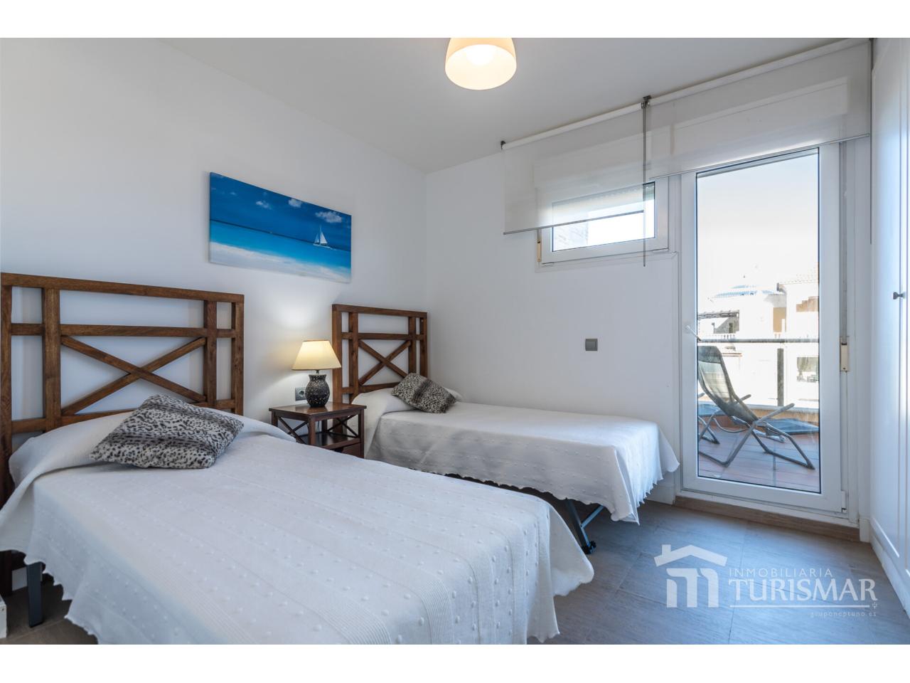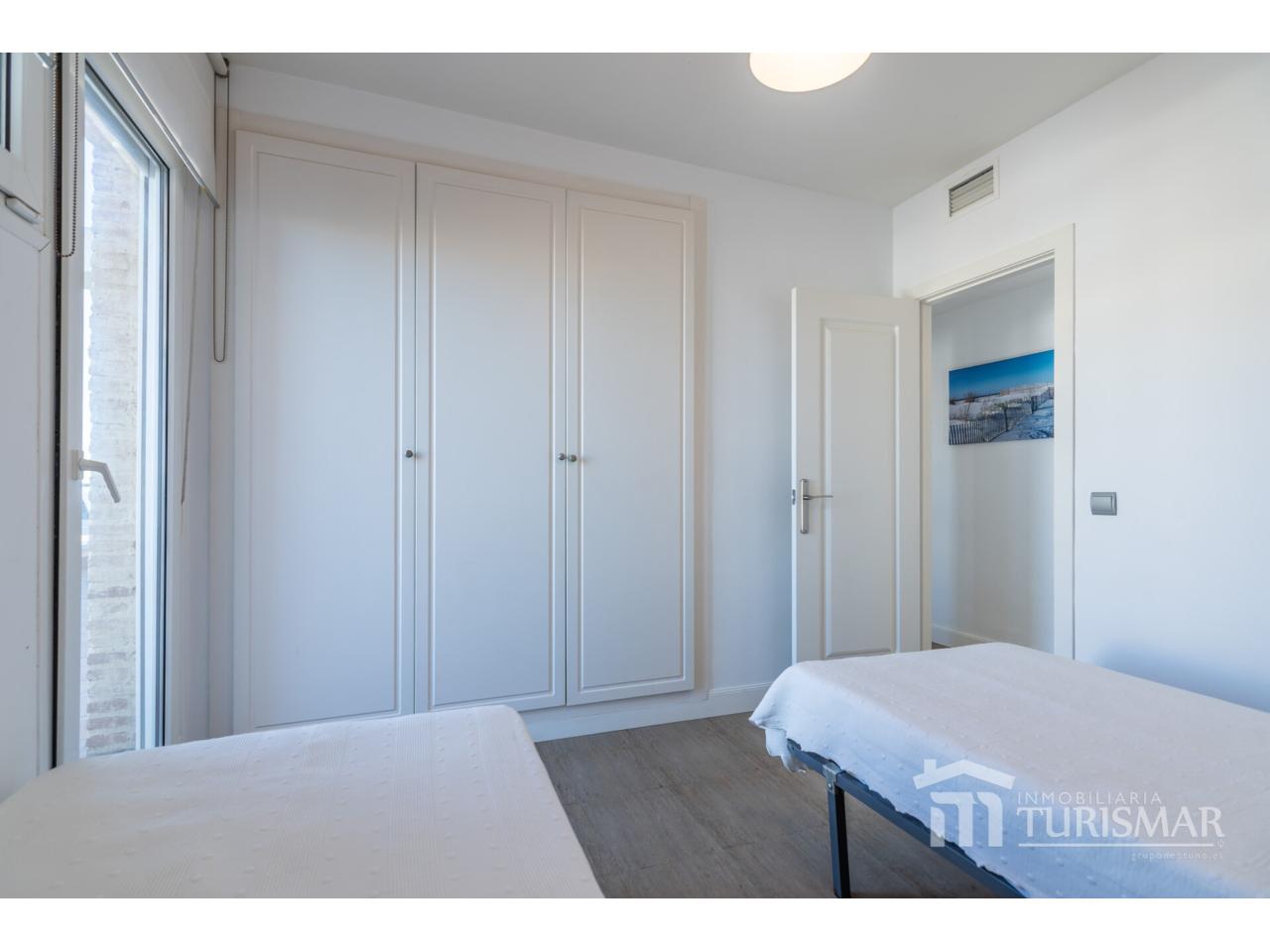 Magnífico ático en Punta del Moral, en primera línea de playa, en quinta planta, con dos terrazas de 30 m2 . Se distribuye en hall, cocina con lavadero, salón-comedor, tres habitaciones y dos baños (uno en suite). Tiene a/a centralizado, toldos y persianas mecanizados, tres armarios empotrados. Se entrega amueblado. Parking interior amplio. Preciosa zona comunitaria de ambiente tropical y acceso directo al paseo de la playa, con piscina adultos e infantil, dos pistas de pádel y chiringuito privado. Muy cerca del puerto deportivo y centro comercial donde encontrará todo tipo de servicios. Año de construcción 2002. Orientación este.