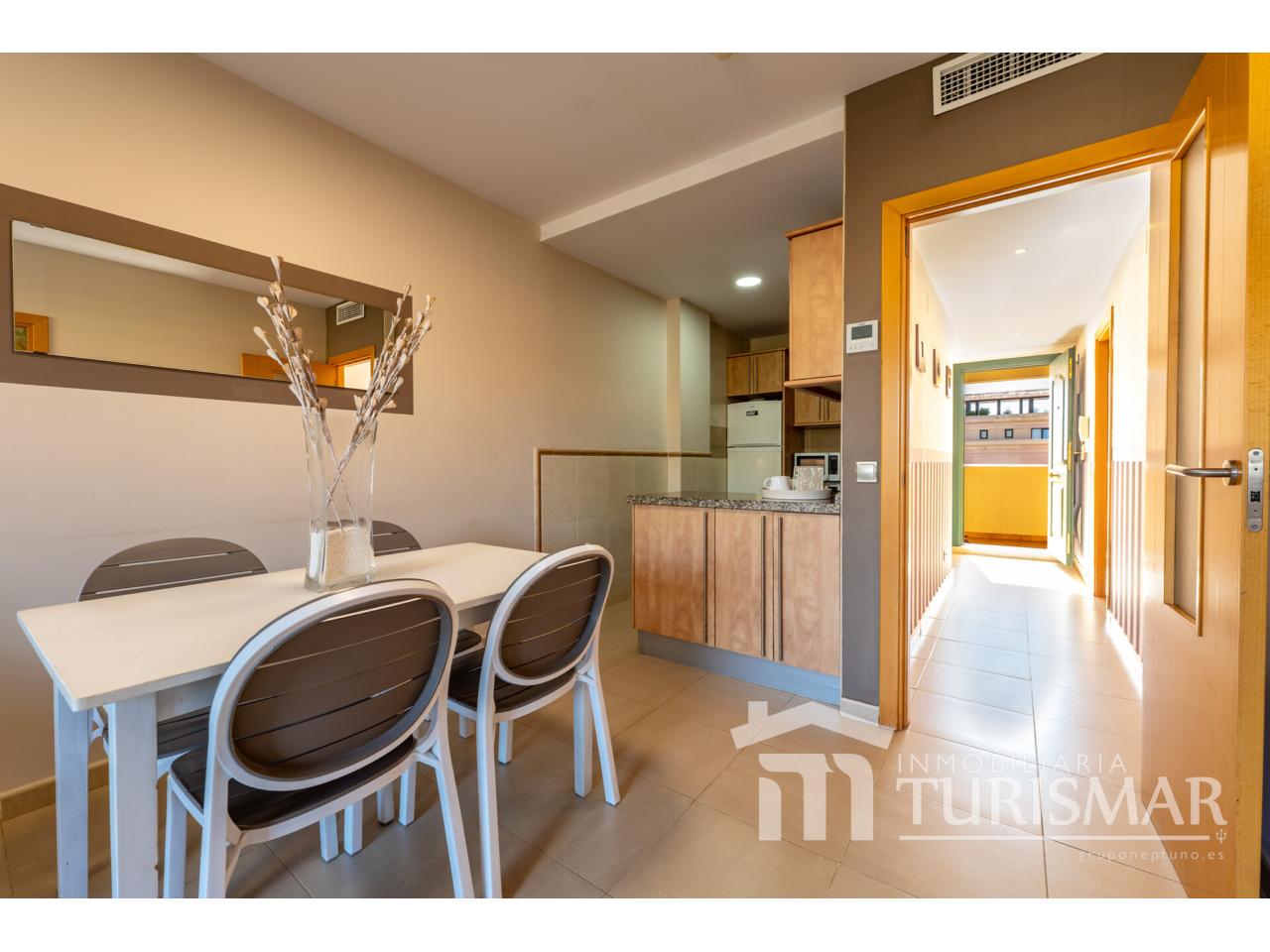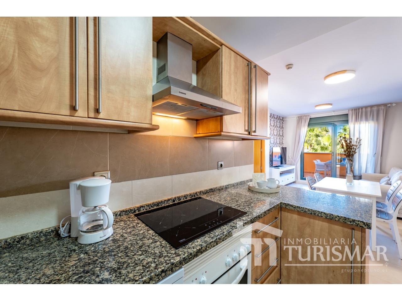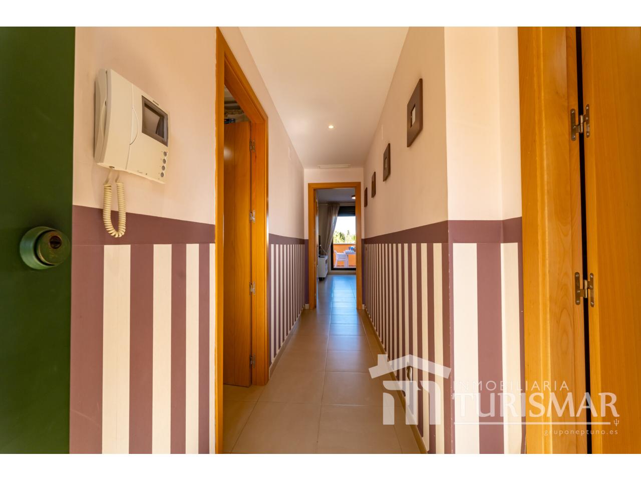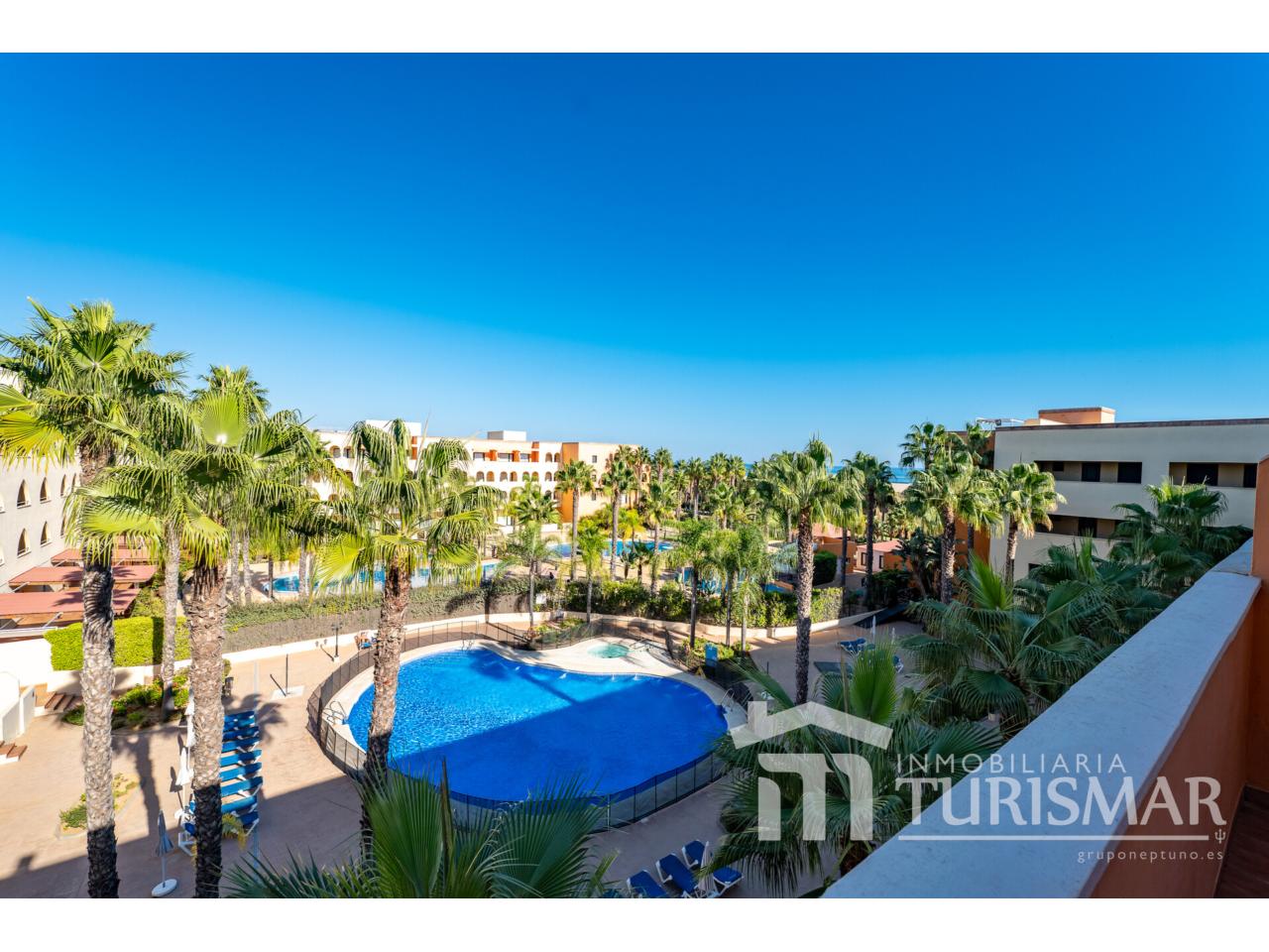 Encantador apartamento en primera línea de playa, 4ª planta con vistas a la piscina, en Punta del Moral, con una superficie de 70 m². Distribuido en dos dormitorios con roperos empotrados, dos baños completos (uno en suite), cocina abierta, salón-comedor y una amplia terraza de 18 m², desde donde puede divisar el mar. Este luminoso apartamento, dispone de aire acondicionado centralizado, parking interior, se entrega completamente amueblado, excelente estado de conservación, listo para entrar a vivir. Las zonas comunes cuentan con piscina, pistas de pádel y acceso a piscina climatizada y jacuzzy. Su orientación sureste, garantiza un ambiente soleado durante todo el día, creando un hogar cálido y acogedor. Año construcción 2008.