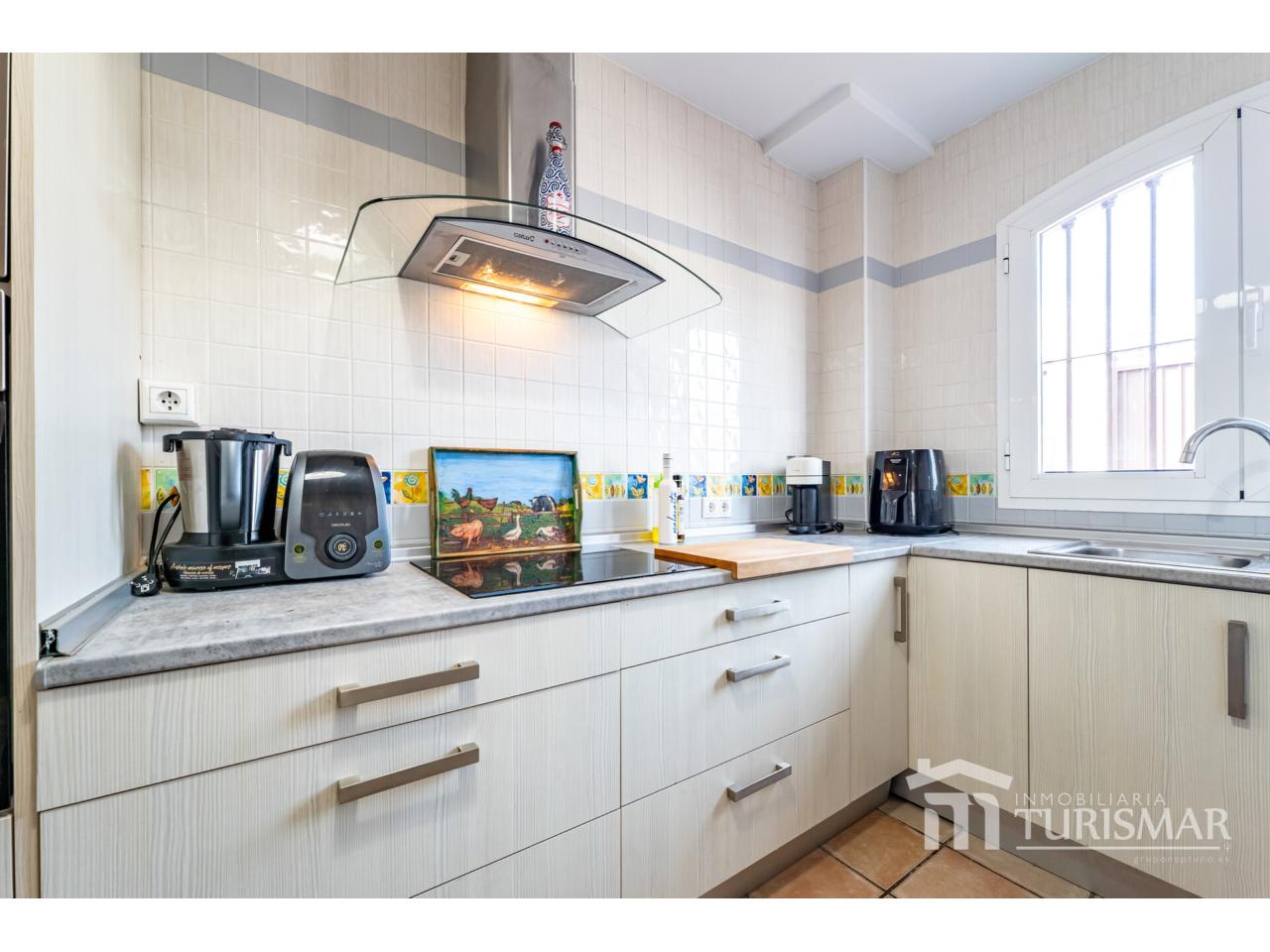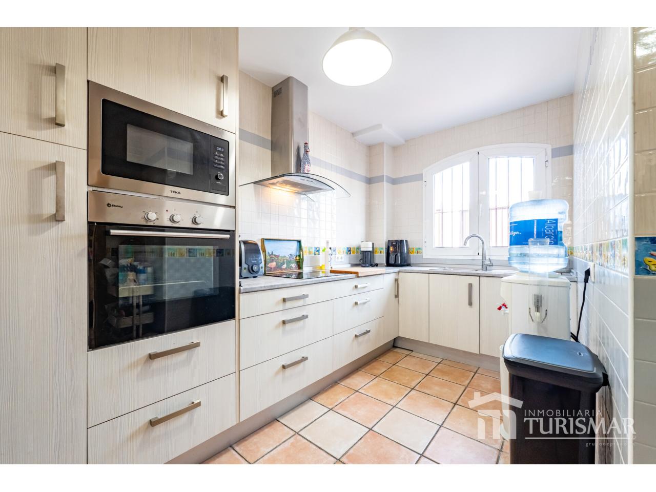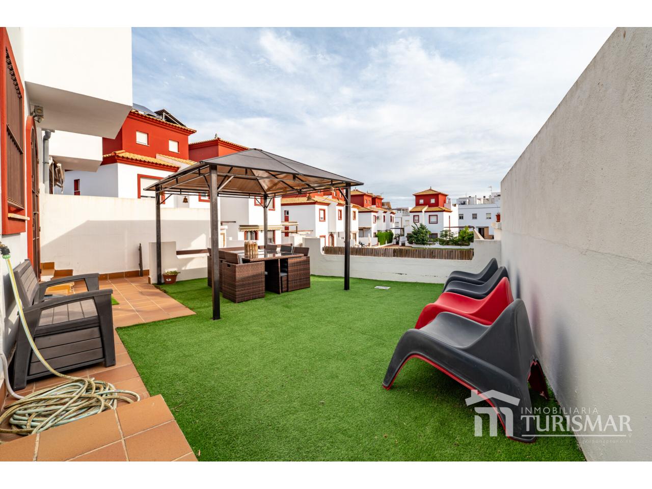 Estupendo chalet pareado en Ayamonte alto, con 210m² construidos y parcela de 275m². De dos plantas más torreón con solárium y sótano. Distribuido en salón-comedor con chimenea, cuatro dormitorios con armarios empotrados, tres baños (uno en suite), cocina, terraza, sótano 75m² con trastero, tiene A/A y se entrega amueblado. Exterior enlosado, habilitado con cocina de verano, barbacoa, velador con vistas a la piscina y espacio para dos coches. Orientación suroeste. Año construcción 2010.